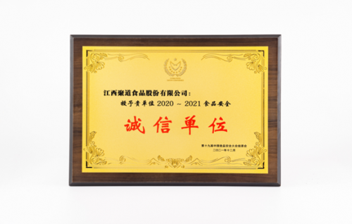 聚道食品近年来还获得了“国家高新技术企业”“省级守合同重信用单位”“江西省农业产业化龙头企业”“中国食品行业质量信用领军单位”“社会扶贫先进单位”“江西脱贫攻坚贡献企业”等荣誉称号。